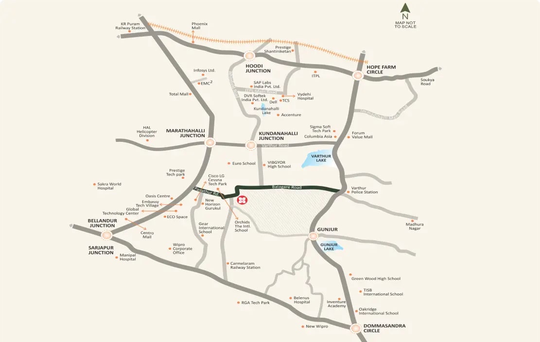 Strategic Connectivity: Situated between Kadubeesanahalli and Panathur, the project ensures seamless access to major IT hubs, educational institutions, healthcare facilities, and entertainment centers, making daily commutes and errands convenient. - Thoughtful Design and Spacious Layouts